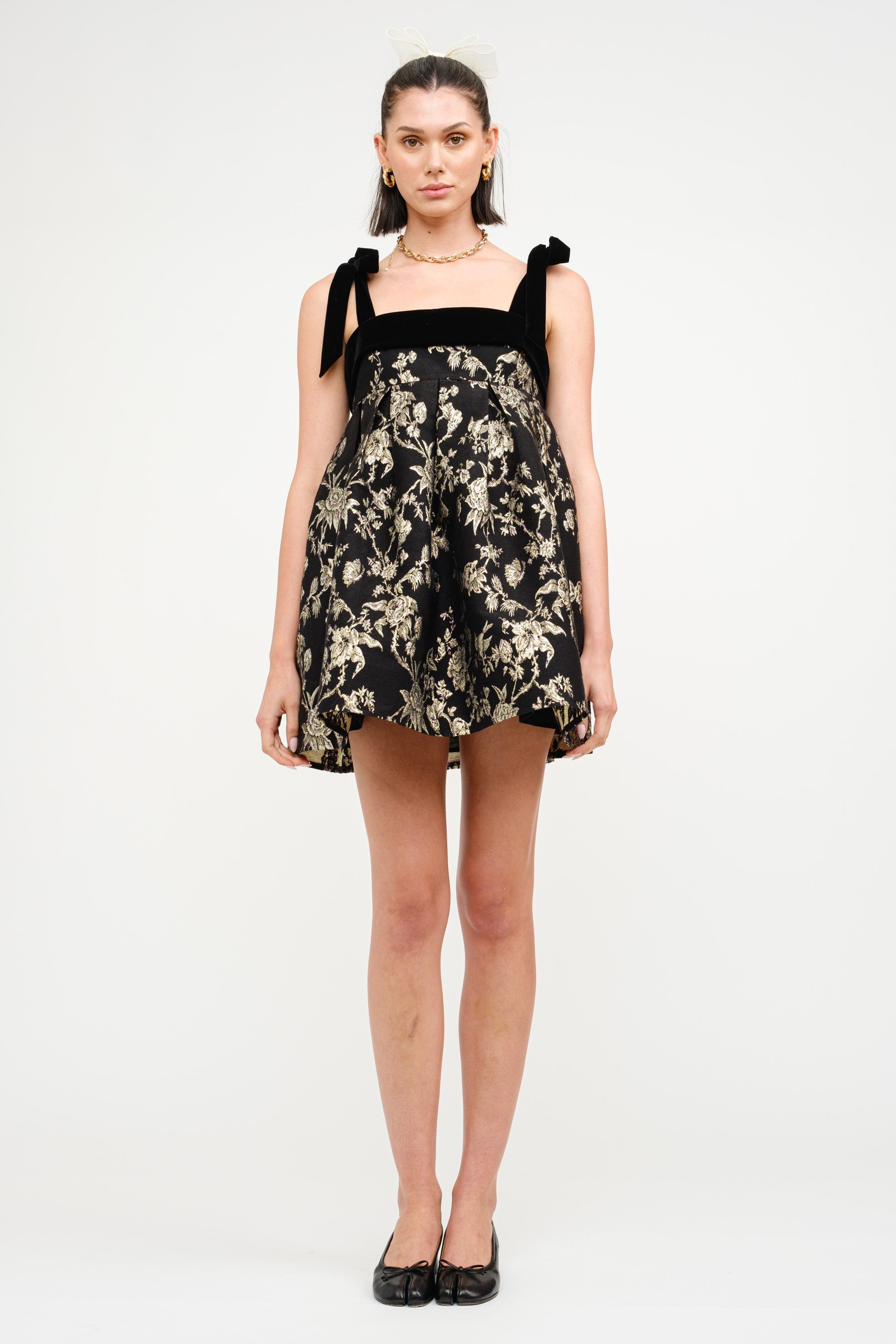 The Stassi Dress features an elegant floral print with luxurious velvet details on a beautiful black backdrop. Perfect for any occasion, this mini dress combines style and comfort seamlessly. Make a statement and stand out with this must-have piece in your holiday wardrobe.