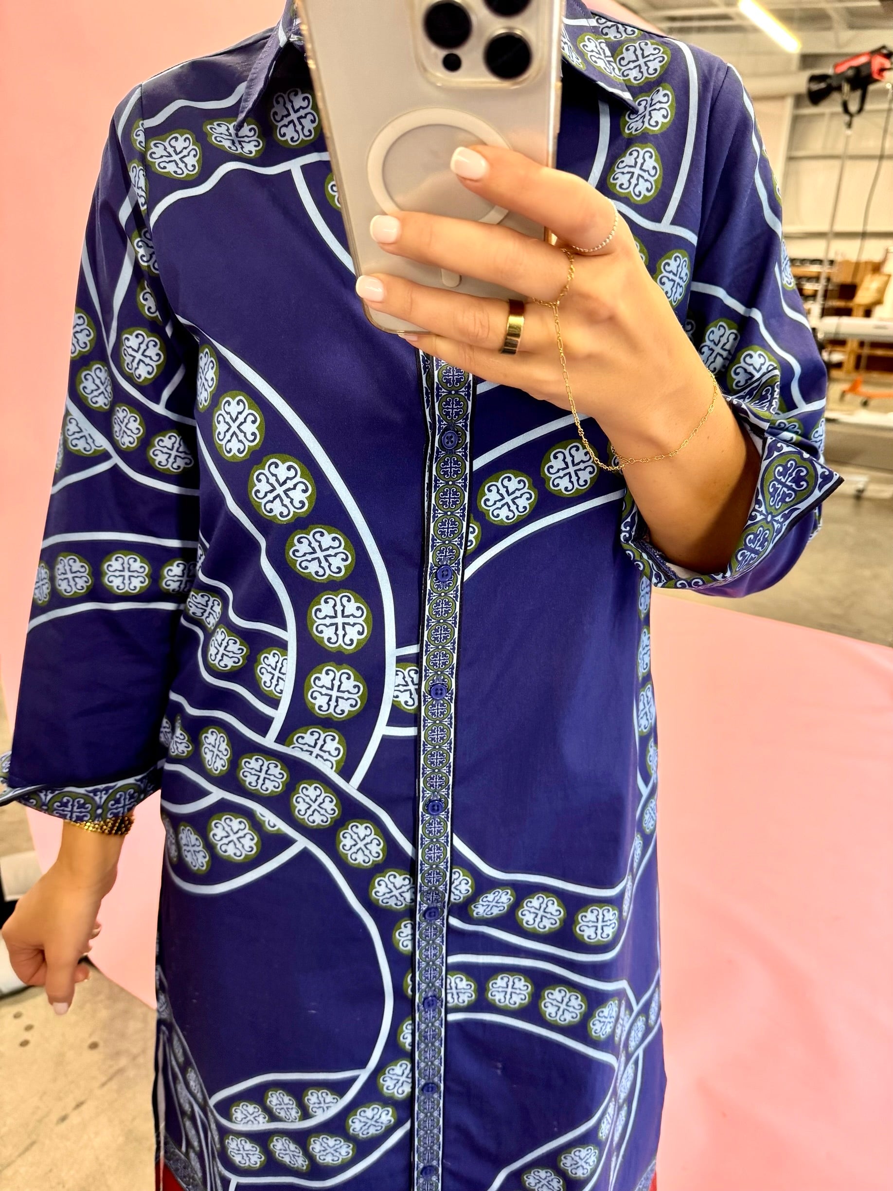 - Gorgeous shirt dress from Maude Vivante with accented trim